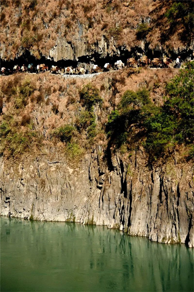 ,茶馬古道像是橫在碧羅雪山的千丈懸崖的一條細縫。踏上古道,最多兩人并排走過的古道一側(cè)是碧羅雪山的峭壁,一