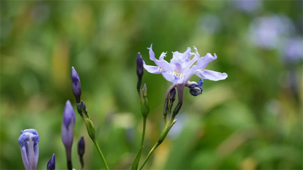 貝的光澤。它們在林間肆意生長,在微風中輕輕搖曳,似一群身著紫紗的仙子翩翩起舞。那淡雅的紫色花瓣,帶著幾分