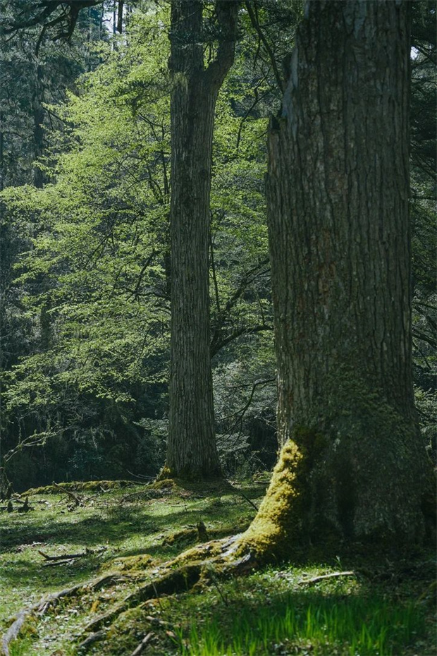 忘了年歲的杉木,原始的蕨類植物,和無處不在的青苔偎依生長。溪流、鳥鳴和風(fēng)吹樹葉的聲音交雜成森林的歡聲笑語