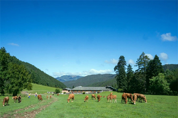 開闊的牧場。地毯般舒適的草場,點綴著牛兒和馬兒。草場的盡頭,是一片高大的松林像森林的大門,走進去,是忽然